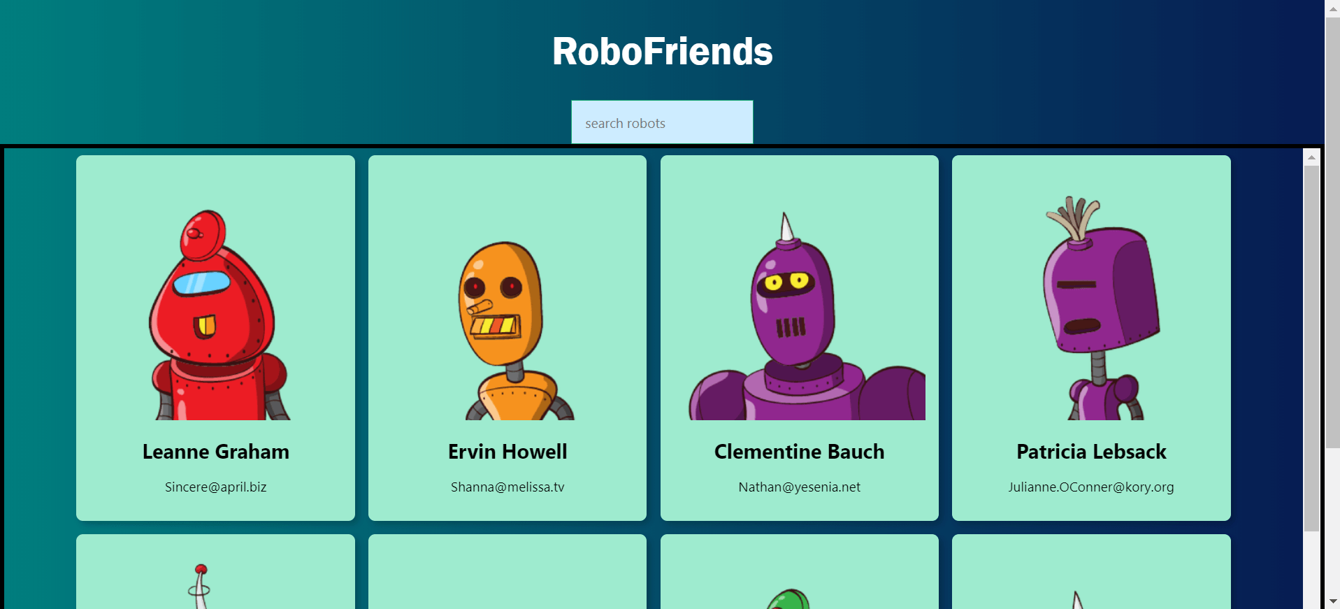 This is was my intro into learning React and using API's in React. It makes use of a template JSON data API and a robot images API.